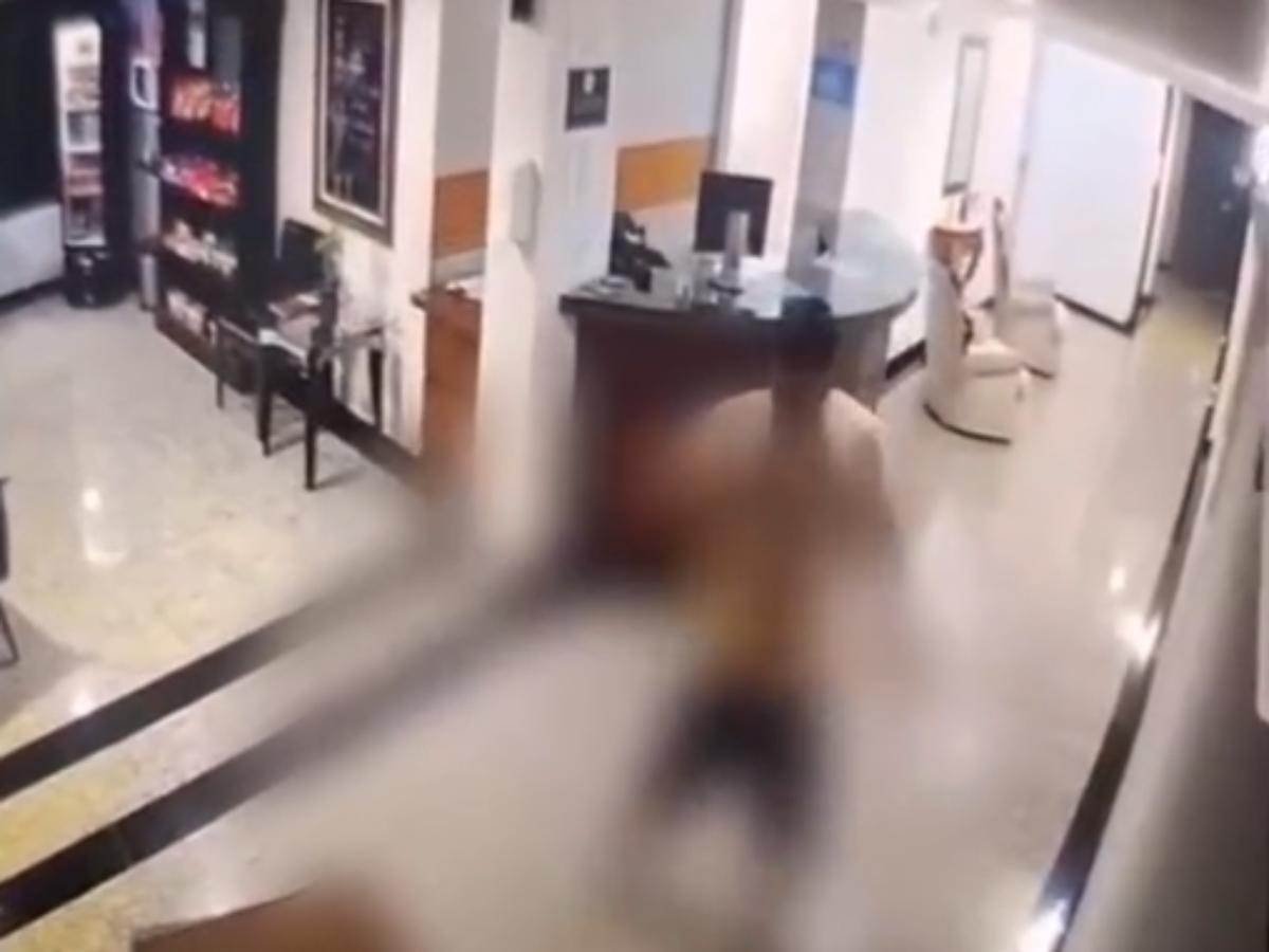 Ao sair do banheiro, no entanto, encontrou o homem no trecho restrito. Segundo o relato da vítima à reportagem, ele teria pulado o balcão da recepção, tentou abraçá-la e, após ser empurrado, passou a agredi-la com socos.