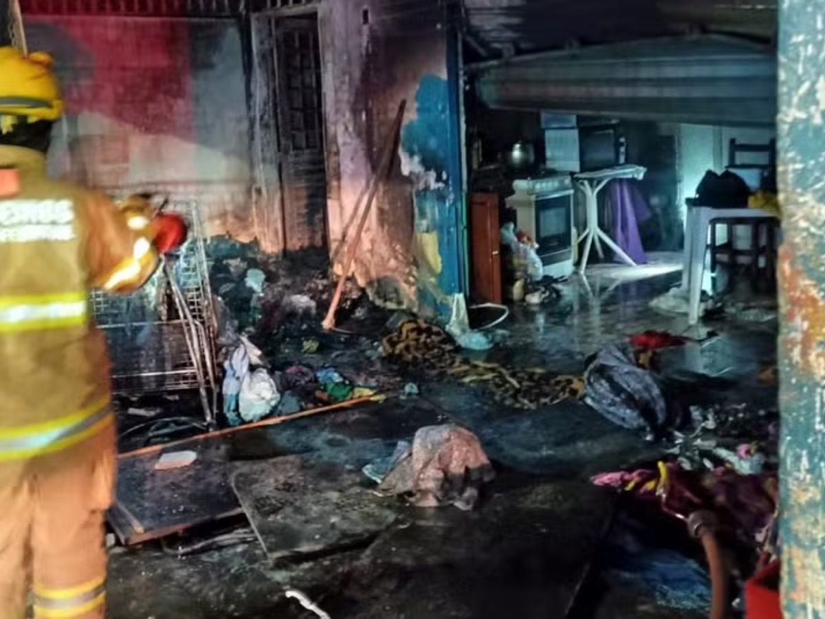No interior do imóvel, estavam a menina de 12 anos e uma criança de um ano e oito meses, ambos filhos da mulher. Os dois foram socorridos pelo Corpo de Bombeiros e encaminhados ao hospital.