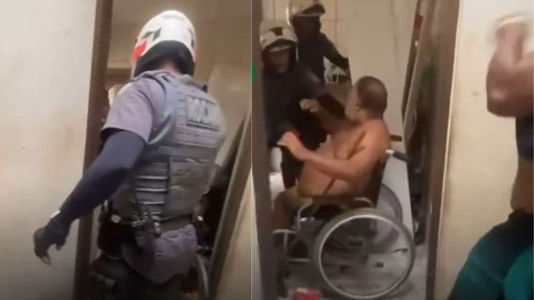 Nas imagens, agente empurra um armário em cima do cadeirante, pai do jovem; os policiais foram afastados das atividades operacionais