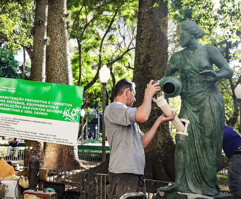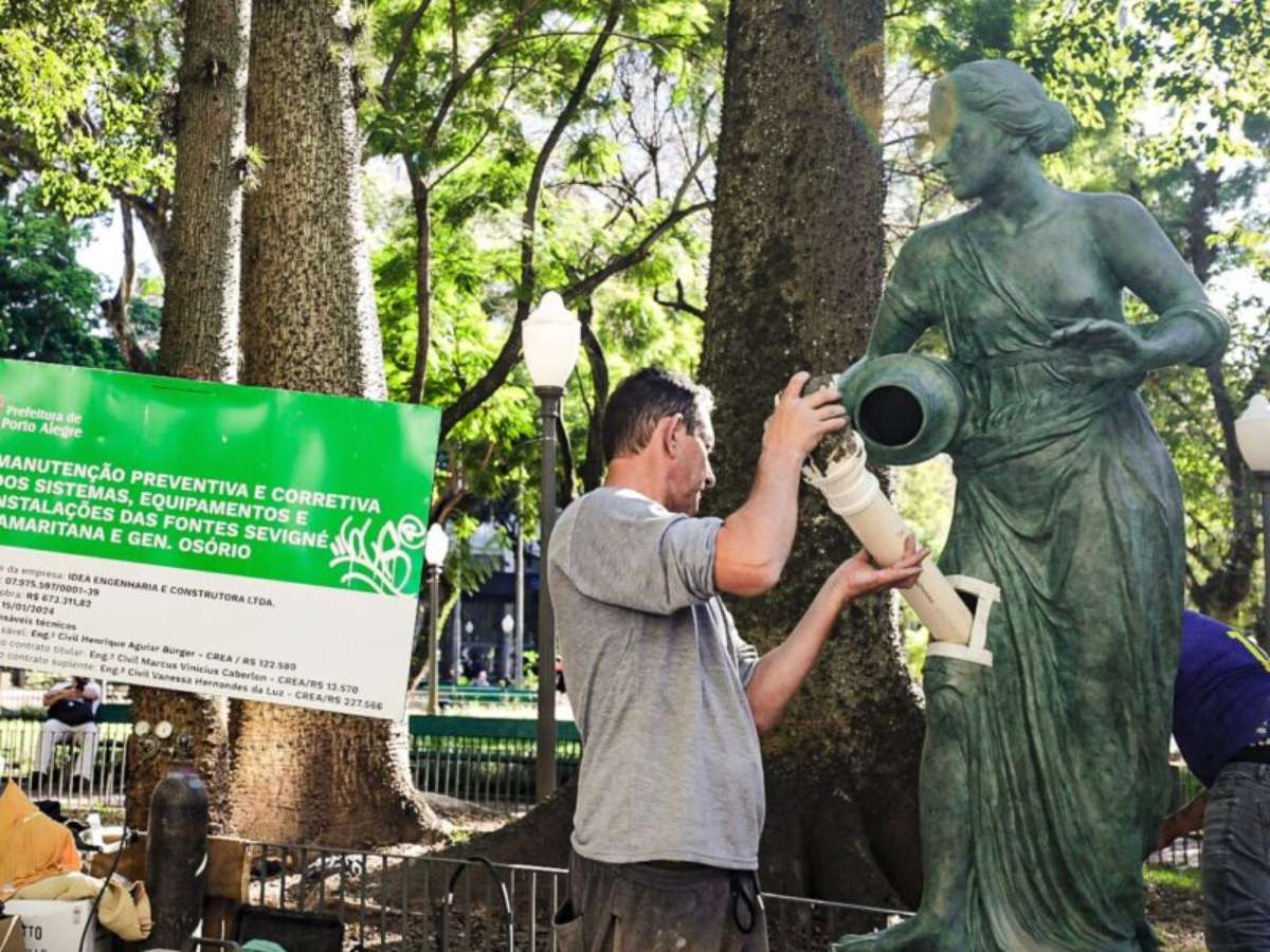 A escultura "A Samaritana", parte do acervo da cidade de Porto Alegre, acaba de ser reinstalada na Praça da Alfândega, no Centro Histórico. A obra, que completou 100 anos em 2025, foi criada por Alfred Adloff e é considerada um importante símbolo cultural do município.