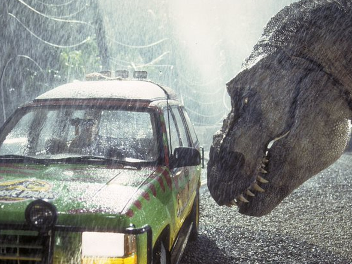 O Tyrannosaurus rex é a atração principal do primeiro filme da franquia Jurassic Park, lançado em 1993.