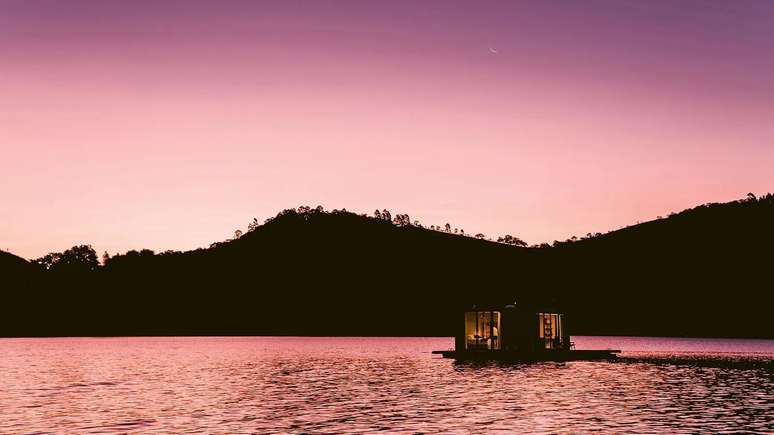 A casa é compacta, mas espaçosa, ecológica e isolada. A estrutura quadrada e minimalista de 38 m² foi feita de materiais 100% recicláveis de um sistema de habitação pré-fabricado chamado LilliHaus, do estúdio brasileiro de design sustentável sysHaus. Ele fica em um deck amplo e envolvente - apoiado por um catamarã - que adiciona mais 26 m² de espaço. Nele há espreguiçadeiras, onde após o pôr do sol a turma pode assistir a filmes projetados em uma parede externa que funciona como tela de cinema.