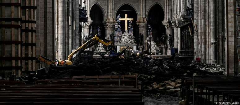 Barbara Schock-Werner: O risco de um colapso adicional é bastante realista. É improvável que o teto abobadado entre em colapso como um todo, mas mais partes podem cair. O que a maioria das pessoas não percebe é que o calor também pode danificar a pedra. O calor intenso dissolve a estrutura da pedra. O teto abobadado de Notre-Dame foi danificado pela queda de partes em três lugares diferentes. Toneladas de vigas de carvalho ainda estão caídas nas seções ainda em pé do teto; é por isso que não é permitido que ninguém fique sob ele, já que ainda há risco de queda de material.