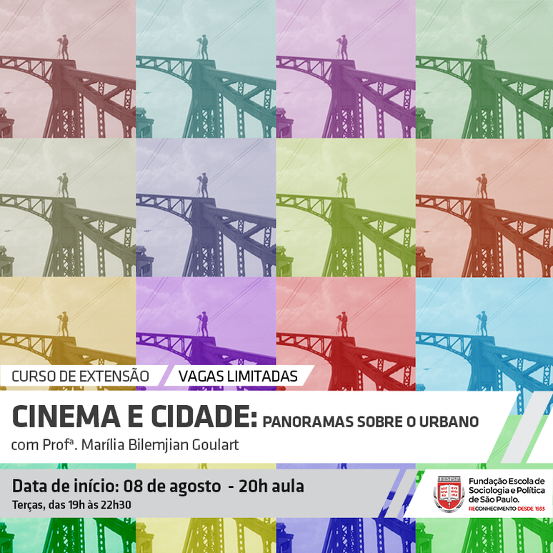 Parte fundamental da cultura urbana, o cinema é expressão privilegiada para discutir a vida nas metrópoles. Meio de produção de conhecimento, arte, política e espetáculo, as imagens em movimento são desde seu surgimento testemunhas e agentes das intensas transformações ocorridas nas cidades. No curso de extensão Cinema e cidade: panoramas sobre o urbano, que começará no próximo dia 8 de agosto, na FESPSP (Fundação Escola de Sociologia e Política de São Paulo), os participantes poderão refletir sobre o urbano através da sétima arte.