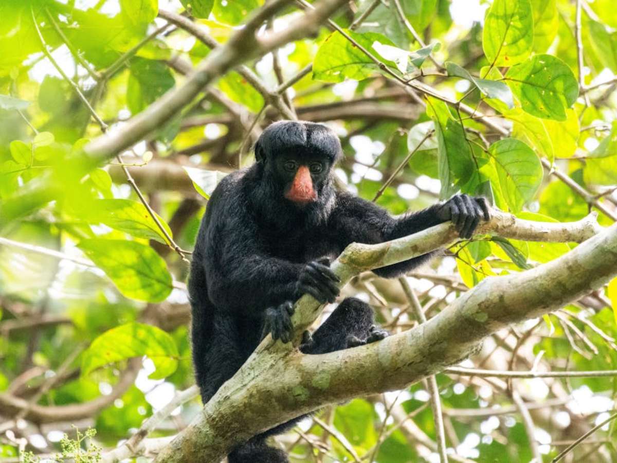 O macaco cuxiú-de-nariz-vermelho é único no planeta e está ameaçado de extinção