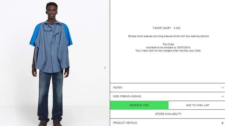 A marca de alta costura Balenciaga está vendendo uma camisa/camiseta como parte da sua coleção de outuno de 2018 por 935 libras (R$ 4,6 mil).