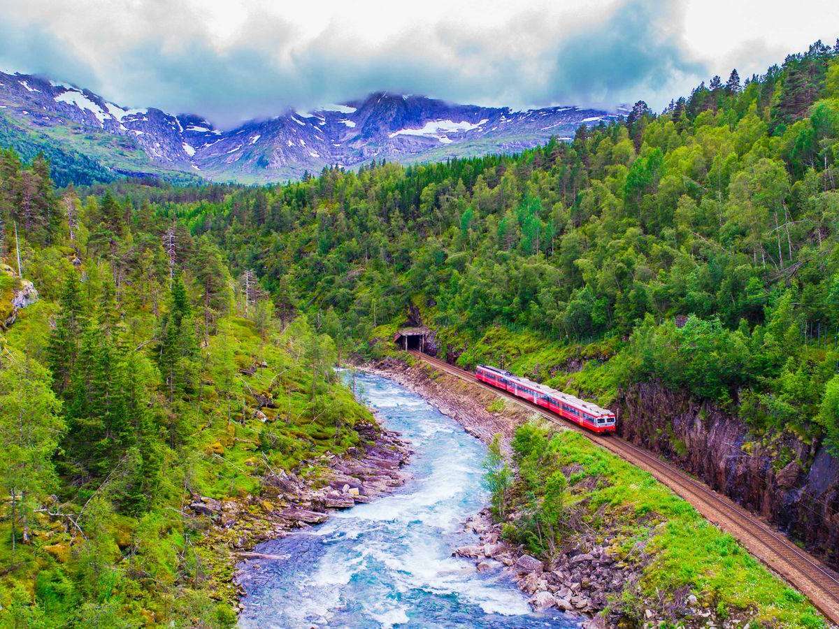 Ligando a elegante capital norueguesa à cidade mais pitoresca do país, a ferrovia Oslo-Bergen tem 39 estações, 496 km de extensão e oferece uma das viagens de trem mais bonitas do mundo