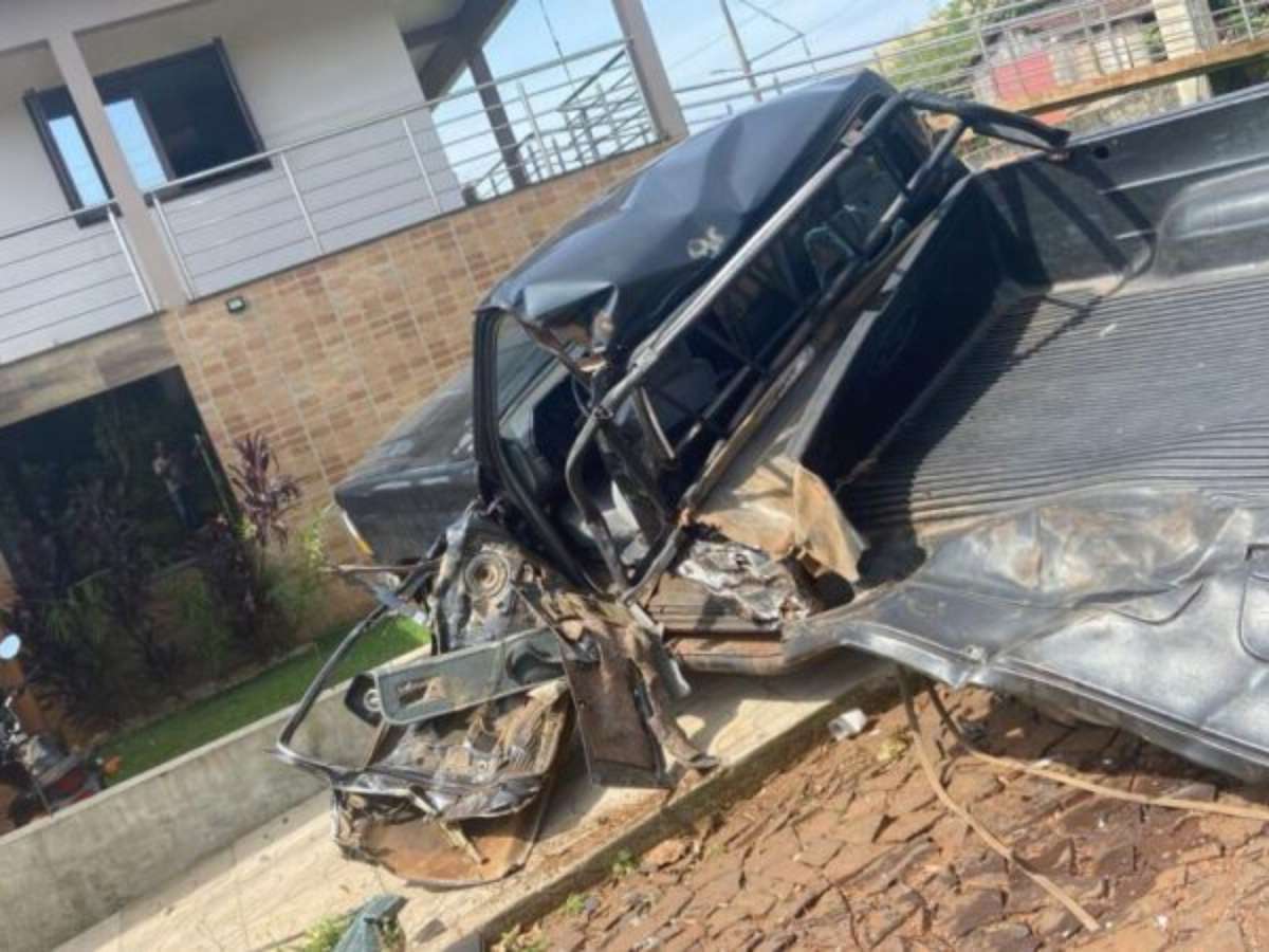Colisão com camionete e tombamento da máquina resultam em apenas ferimentos leves