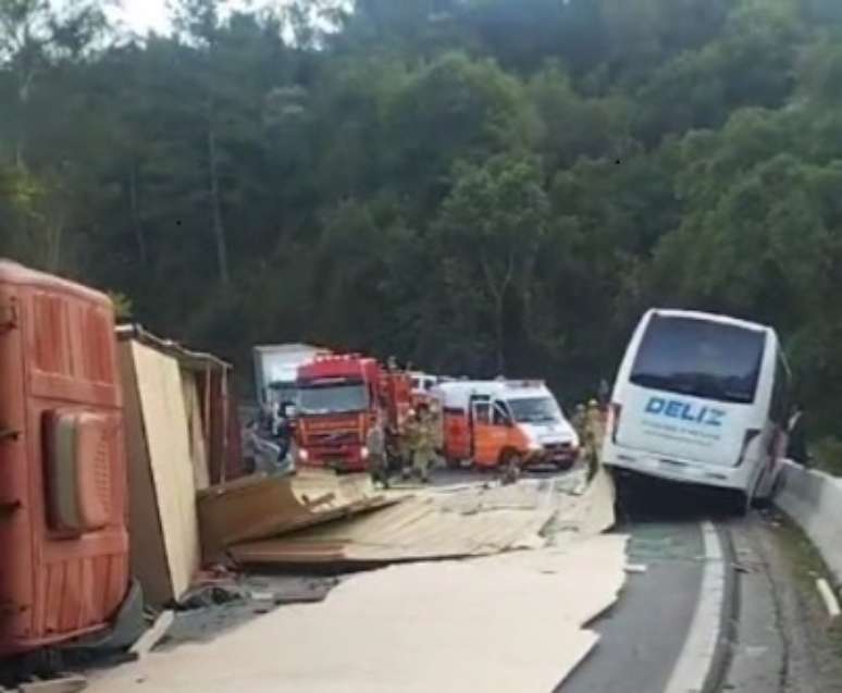 Não há informações confirmadas sobre o estado de saúde do condutor do caminhão envolvido na batida.