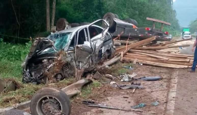 Segundo informações do Corpo de Bombeiros, os dois caminhões transportavam cargas de madeira e subiam a serra quando o veículo da frente reduziu a velocidade e sinalizou uma ultrapassagem. Nesse momento, o carro que seguia na mesma direção também tentou realizar a manobra e acabou ficando entre os caminhões, provocando o impacto.
