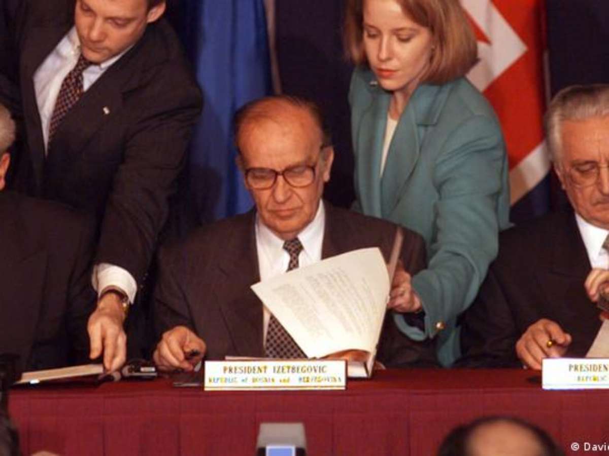 O Acordo de Paz de Dayton, concluído em 21 de novembro de 1995 e assinado em 14 de dezembro do mesmo ano em Paris, pôs fim à guerra de três anos e meio na Bósnia e Herzegovina. O conflito entre sérvios, bósnios muçulmanos e croatas foi marcado por limpeza étnica, o sangrento cerco de Sarajevo e o genocídio de Srebrenica .