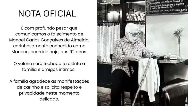 Maneco, como era carinhosamente chamado, faleceu no Rio de Janeiro, aos 92 anos. O escritor estava internado no Hospital Copa Star, onde lutava contra as limitações motoras e cognitivas impostas pela Doença de Parkinson