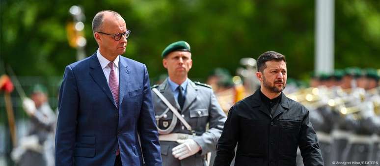 O presidente ucraniano se reúne com Merz no momento em que a Ucrânia busca mais apoio militar em meio a uma nova escalada na campanha militar russa, apesar dos esforços liderados pelos EUA para acabar com a guerra.