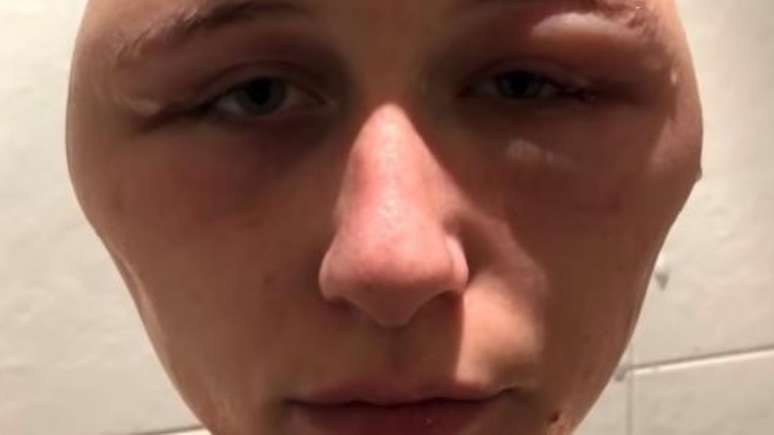 Apesar do cuidado, ela acordou na manhã seguinte com o rosto deformado e os olhos quase fechados. "Parecia que eu tinha uma lâmpada no lugar da cabeça", recordou. Depois, ao notar que, além do rosto, a língua também começou a inchar, ela não hesitou em buscar ajuda médica. No hospital, recebeu uma injeção de adrenalina e precisou ser internada por precaução.