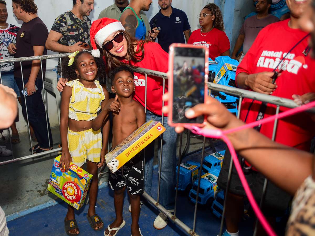 Anitta foi a Honório Gurgel, na Zona Norte do Rio de Janeiro, entregar cestas de Natal e brinquedos a famílias. Ela nasceu e cresceu na região e tem um carinho especial por lá: “Quem é de lá sabe que estou sempre dando um jeitinho de retribuir tudo que recebi deste lugar”, escreveu a cantora em publicação sobre a ação solidária desta segunda-feira, 22.