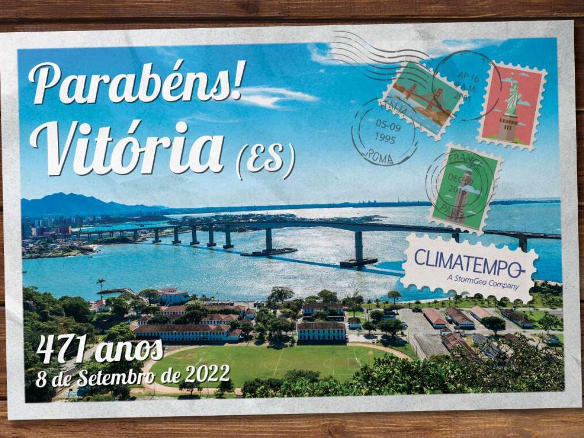 A cidade de Vitória completa 471 anos nesta quinta-feira, 8 de setembro de 2022. Nesta quinta, o ar seco ganha força no Sudeste do país, impedindo a formação de nuvens carregadas. O amanhecer ainda começou com variação de nebulosidade, mas nas próximas horas o sol brilha forte e as temperaturas sobem mais, se comparado aos últimos dias. A máxima prevista para a tarde desta quinta-feira é de 28 °C.