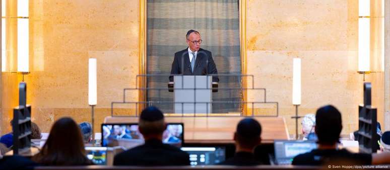 Este foi o primeiro de dois discursos de Merz sobre a situação da comunidade judaica na Alemanha em 48 horas. Nesta quarta-feira (17/09), às vésperas do Ano Novo Judaico no dia 22, o chanceler alemão será o orador principal de um evento em Berlim para celebrar os 75 anos do Conselho Central dos Judeus no país.