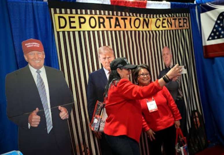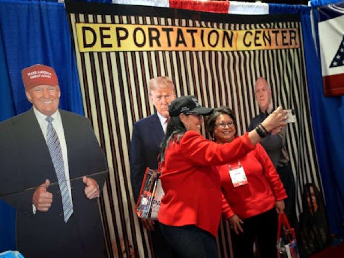 Outro estande com um fundo listrado de amarelo e preto que lembrava as grades de uma cela de prisão foi chamado de "Centro de Deportação". Os participantes se fotografaram nesse estande, posando ao lado de recortes em tamanho real de Trump e de seu czar da fronteira, Tom Homan.