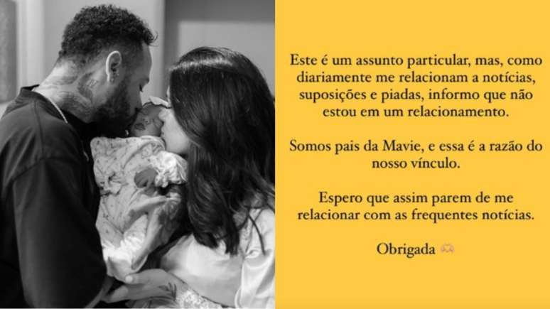 "Somos pais da Mavie, e essa é a razão do nosso vínculo. Espero que assim parem de relacionar com as frequentes notícias. Obrigada", concluiu.