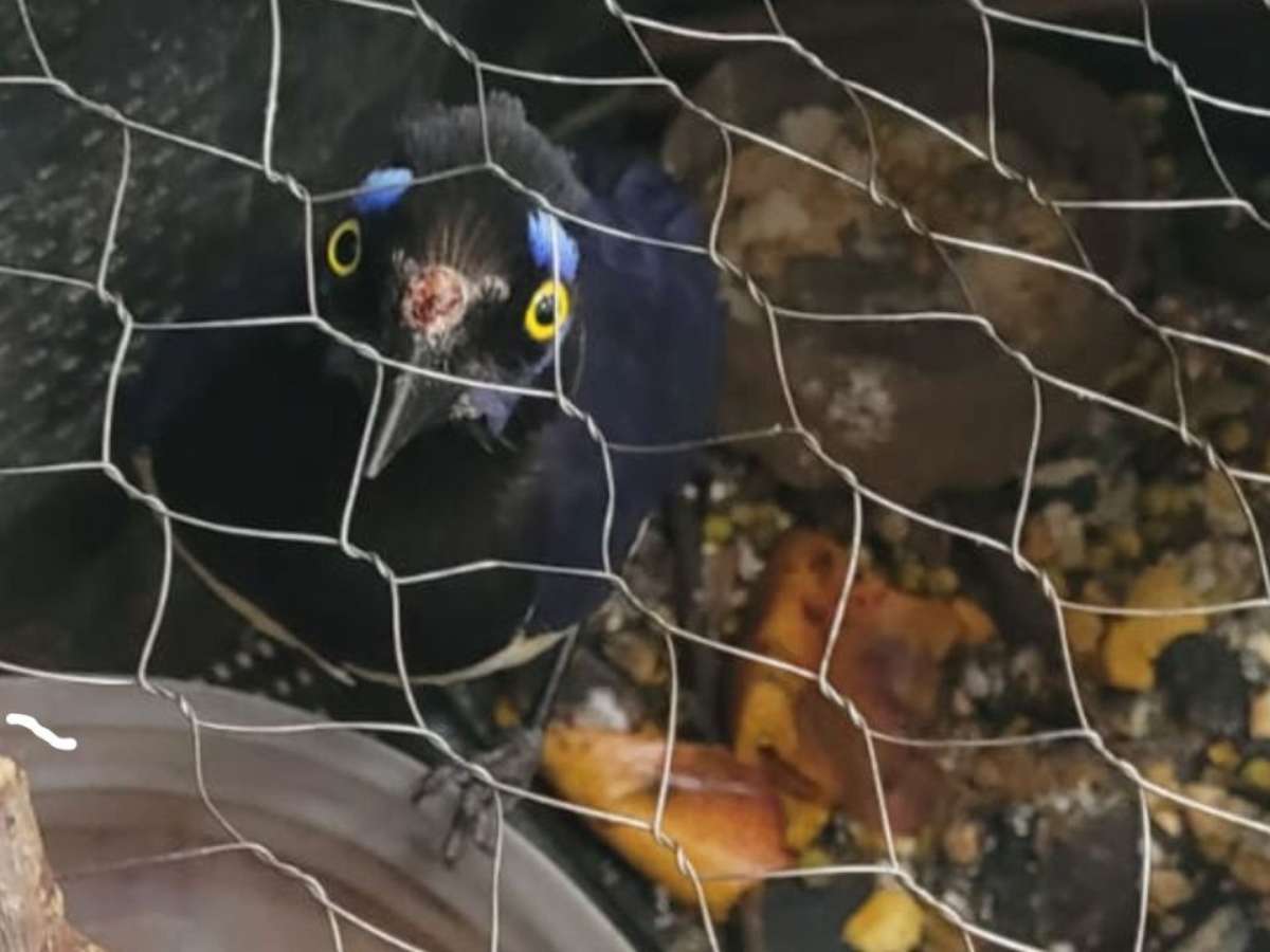Em vistoria, os militares encontraram as duas gaiolas improvisadas, onde estavam um periquito de cabeça preta e uma gralha-picaça