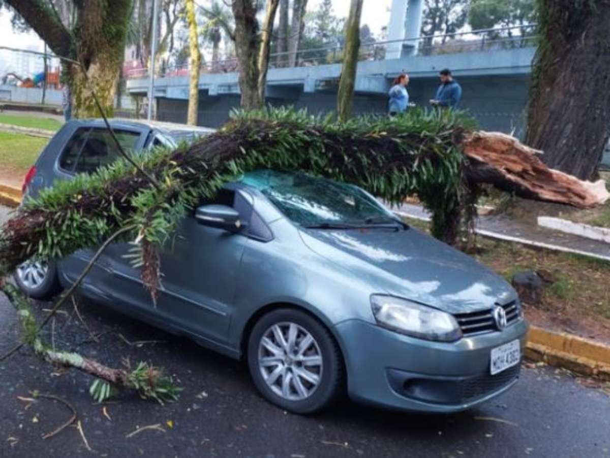 Árvore cai sobre carro com casal dentro em Bento Gonçalves