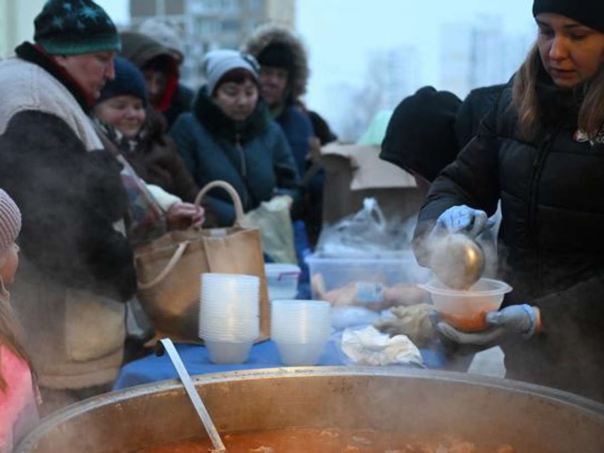 As autoridades de Kiev oferecem refeições quentes diariamente para os mais vulneráveis. Muitos voluntários também ajudam as pessoas que não podem se locomover.