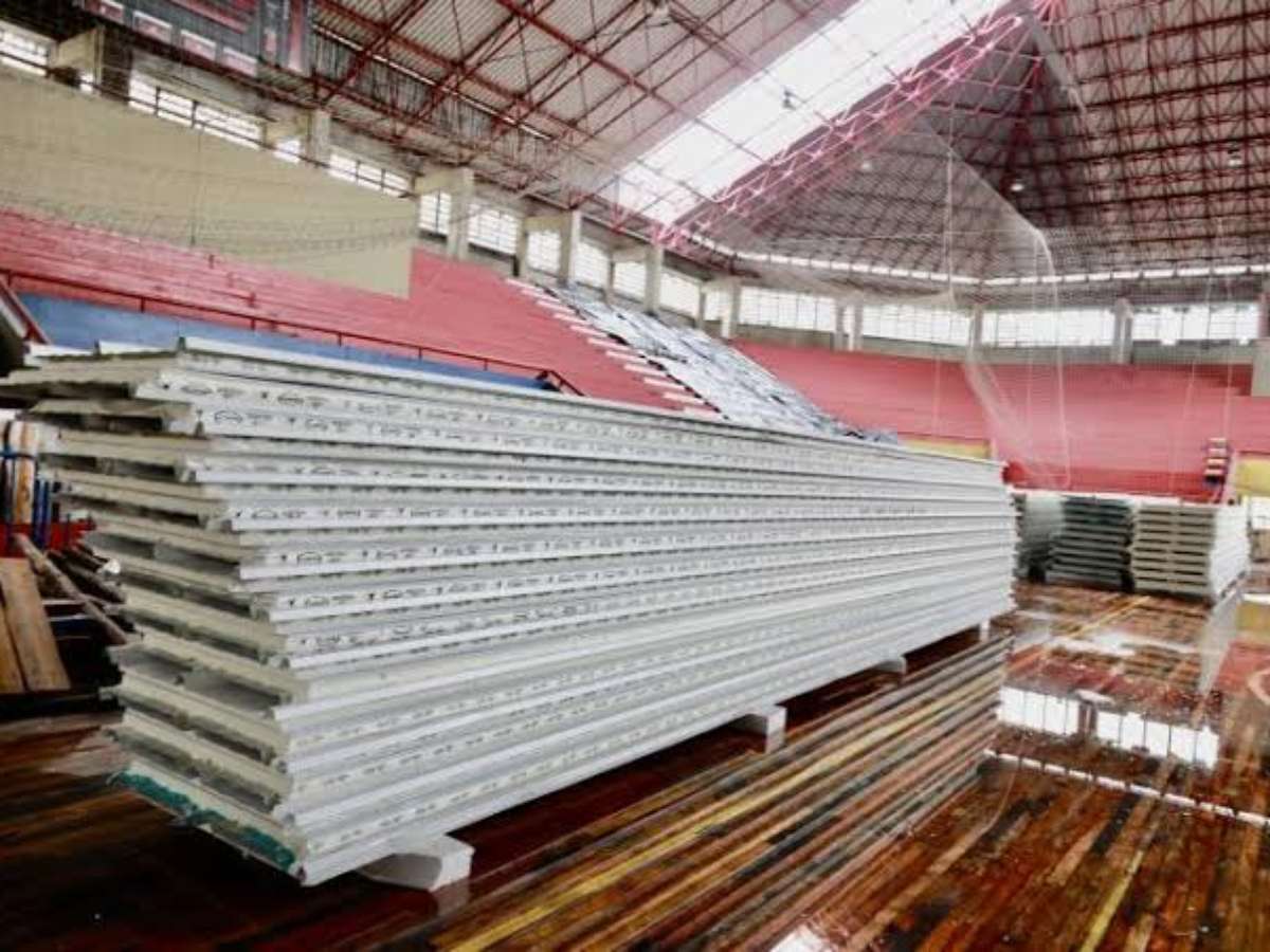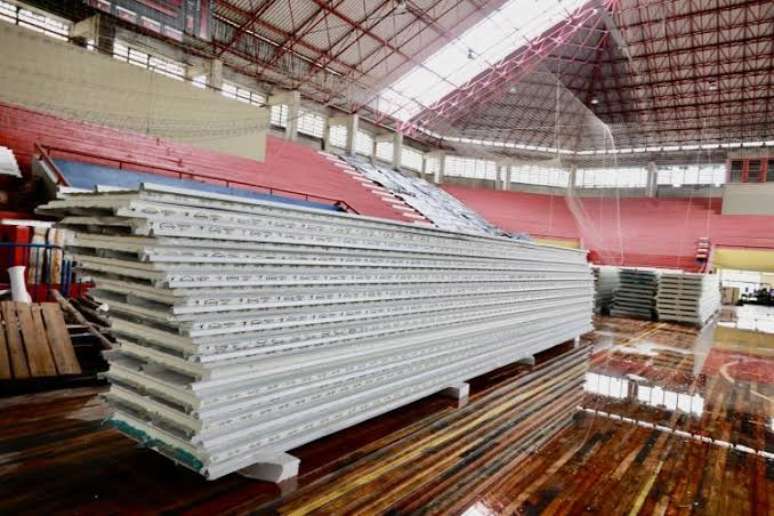 Primeira etapa - A primeira etapa da reforma se iniciou no segundo semestre de 2023, focada na subestação de energia, em todo o elo inferior direito, que inclui sala de ginástica, clínica de fisioterapia e área administrativa, banheiros, vestiários e itens do Plano de Prevenção e Proteção Contra Incêndios (PPCI). Após a enchente e um temporal, os trabalhos voltaram a avançar e estão em fase de conclusão.