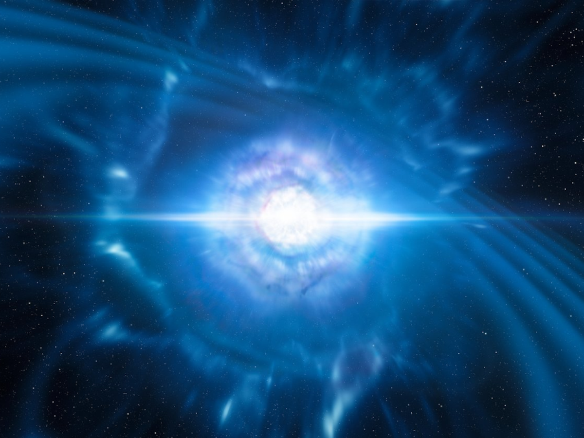 Quando duas estrelas de nêutrons orbitam uma à outra e finalmente colidem - uma chamada fusão de estrelas de nêutrons binárias -, elas produzem algumas das explosões mais poderosas do Universo. Estes eventos liberam intensos flashes de raios gama, que os astrônomos chamam de "explosões curtas de raios gama". Estas explosões podem liberar tanta energia quanto o nosso Sol produzirá ao longo de toda a sua vida em menos de dois segundos.