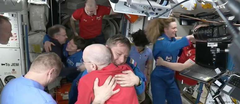 Na sexta-feira, o Dragon foi lançado em órbita pelo foguete Falcon 9, com quatro astronautas a bordo, que ficarão na ISS pelos próximos seis meses - as americanas da Nasa Anne McClain, 45, e Nichole Ayers, 36; o japonês Takuya Onishi, 49, da Jaxa; e o russo Kirill Peskov, 34, do Roscosmos.