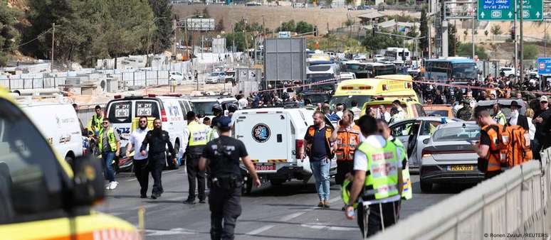 Autoridades israelenses relatam que dois palestinos abriram fogo em um ponto de ônibus. Ataque deixou ao menos 12 feridos.Ao menos seis pessoas morreram e 12 ficaram feridas em um ataque a tiros em um ponto de ônibus em Jerusalém nesta segunda-feira (08/09), de acordo com os serviços de saúde locais. A polícia descreveu o incidente, um dos mais mortais ocorridos na cidade nos últimos anos, como um ataque terrorista.