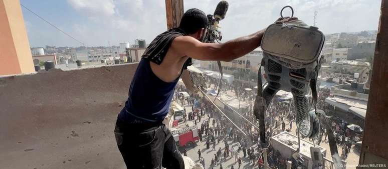 O cinegrafista Hussam al-Masri, contratado pela Reuters, foi atingido por um primeiro míssil enquanto monitorava uma transmissão ao vivo para a agência, em um andar logo abaixo do telhado do hospital Nasser, em Khan Yunis, sul do território palestino.