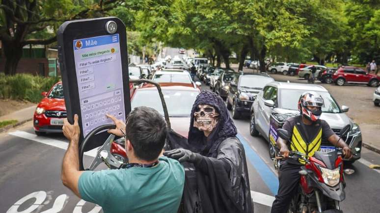 A utilização do celular durante a condução de veículos em Porto Alegre é uma preocupação crescente entre as autoridades de trânsito. Para combater esse comportamento, a Escola Pública de Mobilidade da EPTC está promovendo ações educativas em cruzamentos estratégicos, com o intuito de conscientizar os motoristas sobre os graves riscos da distração. A ação, que traz uma figura representando a morte, busca alertar os condutores sobre as potenciais consequências fatais de manusear o celular enquanto dirigem.