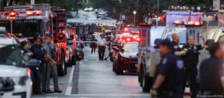 Entre as vítimas estão um policial em serviço e três civis. Suspeito dirigiu de Las Vegas até arranha-céu em área movimentada da cidade de Nova York.Um atirador abriu fogo em um prédio comercial em Manhattan, na cidade de Nova York, matando um policial e pelo menos três civis nessa segunda-feira (28/07).