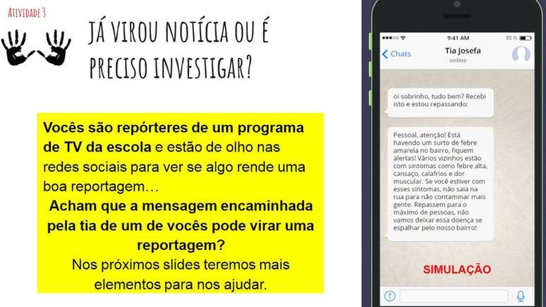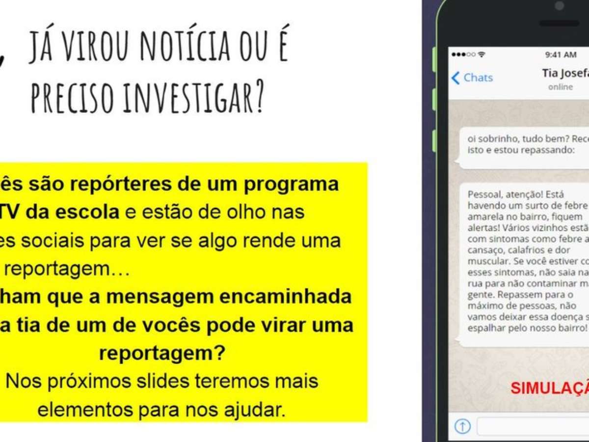 A atividade começa com o slide acima. O post recebido da Tia Josefa pode ser um ponto de partida para uma reportagem, mas é suficiente para embasar uma reportagem?
