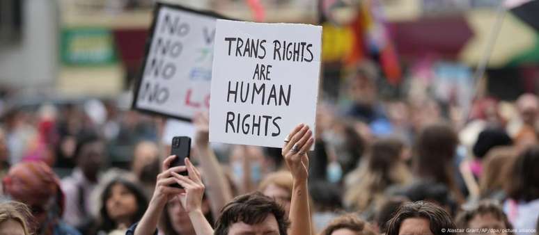 Protesto ocorreu três dias após Suprema Corte do Reino Unido decidir que definição legal do termo "mulher" está baseada no sexo ao nascer. Ativistas dos direitos trans criticaram a decisão.Milhares de pessoas se manifestaram em Londres neste sábado (19/04) em defesa dos direitos das pessoas transgênero. O ato ocorreu três dias depois da Suprema Corte do Reino Unido decidir que a definição legal do termo "mulher" está baseada no sexo designado ao nascer.