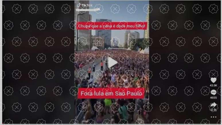 A multidão que pula em um vídeo que viralizou no TikTok não grita "Lula, vá tomar no cu", como fazem crer publicações enganosas. O áudio foi adicionado à gravação original, feita no Vale do Anhangabaú, que mostra foliões do bloco de Carnaval Acadêmicos do Baixo Augusta cantando "olê, olê, olá, Lula, Lula", em 24 de abril.