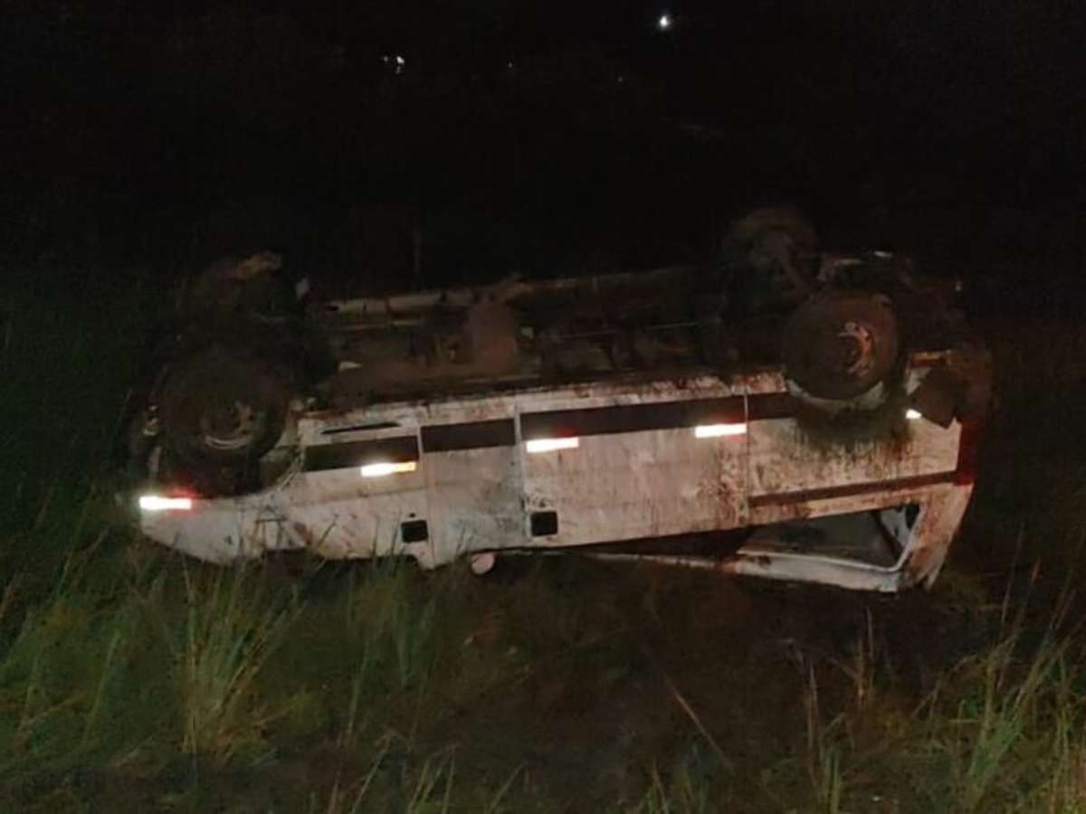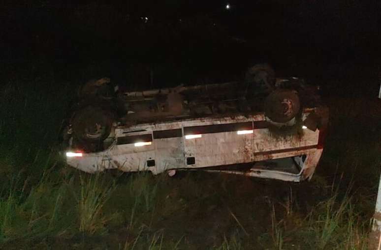 Van capota em trecho da rodovia, deixando dois feridos graves e outros com lesões leves.
