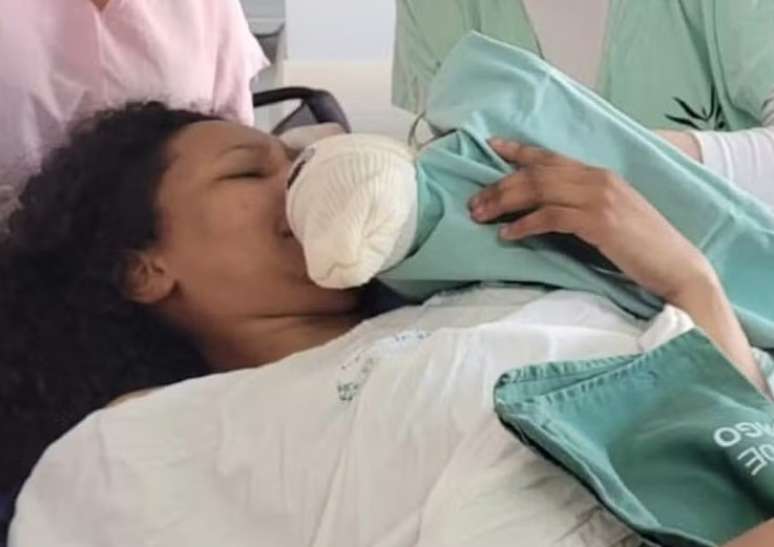 Durante o trajeto, as dores se intensificaram. Ao chegar, Eder correu para buscar uma cadeira de rodas, mas, ao voltar, já encontrou a filha coroando. O nascimento ocorreu ali mesmo, com a ajuda de um médico obstetra recém-formado que passava pelo local.