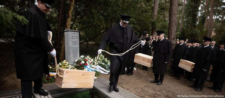 "A prática desumana do racismo de pesquisa não previu enterro para os restos mortais e os jogou em covas", disse Daniel Botmann, representante do Conselho Central de Judeus da Alemanha. "Hoje estamos levando ao seu último lugar de descanso inúmeras vidas cujas vozes e biografias foram extintas."