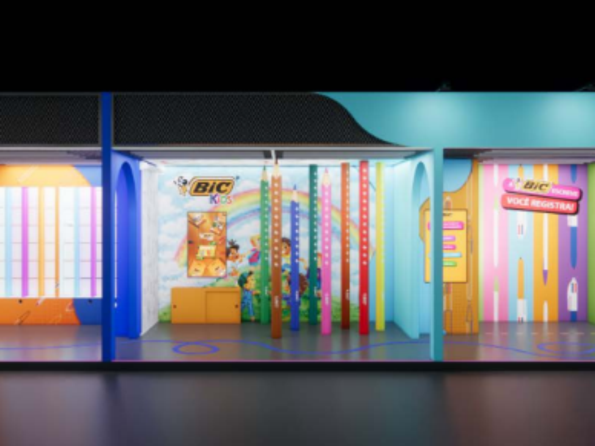 Voltado ao público infantil, o espaço BIC Kids reúne elementos em grande escala e um painel de desenho coletivo. O ambiente permite a experimentação de lápis de cor em madeira da marca em atividades voltadas ao uso prático dos produtos.
