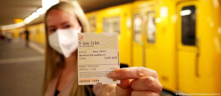 Pelos próximos três meses, passageiros poderão usar transporte público por 9 euros mensais. Combustíveis também tiveram abono. Medidas visam abrandar a alta dos preços da energia resultante da guerra na Ucrânia.Entrou em vigor na Alemanha, nesta quarta-feira (01/06), o bilhete único mensal que permite o uso do transporte público em todo o país por apenas 9 euros (R$ 47) mensais. O plano faz parte de um pacote de medidas de alívio financeiro devido ao aumento dos preços de energia causado pela invasão da Ucrânia pela Rússia. O desconto é válido para os meses de junho, julho e agosto.