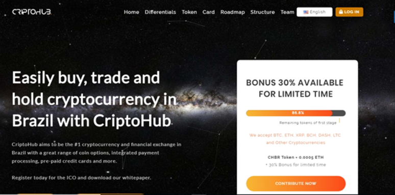 Exchange de criptomoedas que busca solucionar os gargalos desse mercado no Brasil, com taxas mais baixas que a média, e-commerce plugin, oferta de cartão de crédito e variedade de moedas virtuais. Antes do lançamento, em junho, abriu uma ICO para monetizar a plataforma. https://ico.criptohub.com.br/pt/.