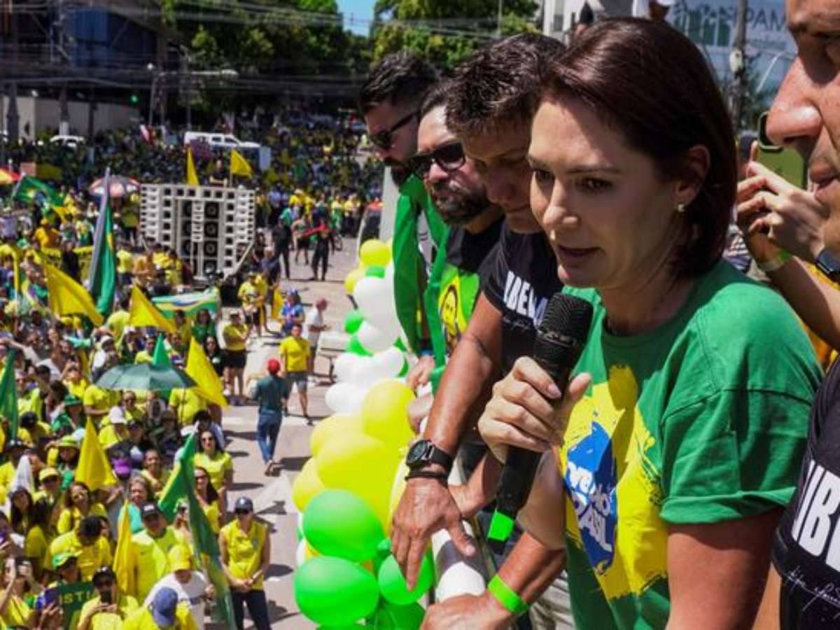 A ex-primeira-dama Michelle Bolsonaro foi escalada para discursar na capital paraense, onde cumpria agenda partidária, e pediu fim da censura no Brasil.