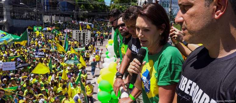 Um vídeo de Bolsonaro, porém, foi publicado nas redes sociais do senador Flávio Bolsonaro. Nele, o ex-presidente aparece em casa, segurando um celular, e faz um breve comentário aos apoiadores reunidos em Copacabana, no Rio de Janeiro. "Boa tarde, meu Brasil. Um abraço a todos, é pela nossa liberdade. Estamos juntos", disse por meio de uma ligação com o senador, transmitida ao vivo para os presentes.