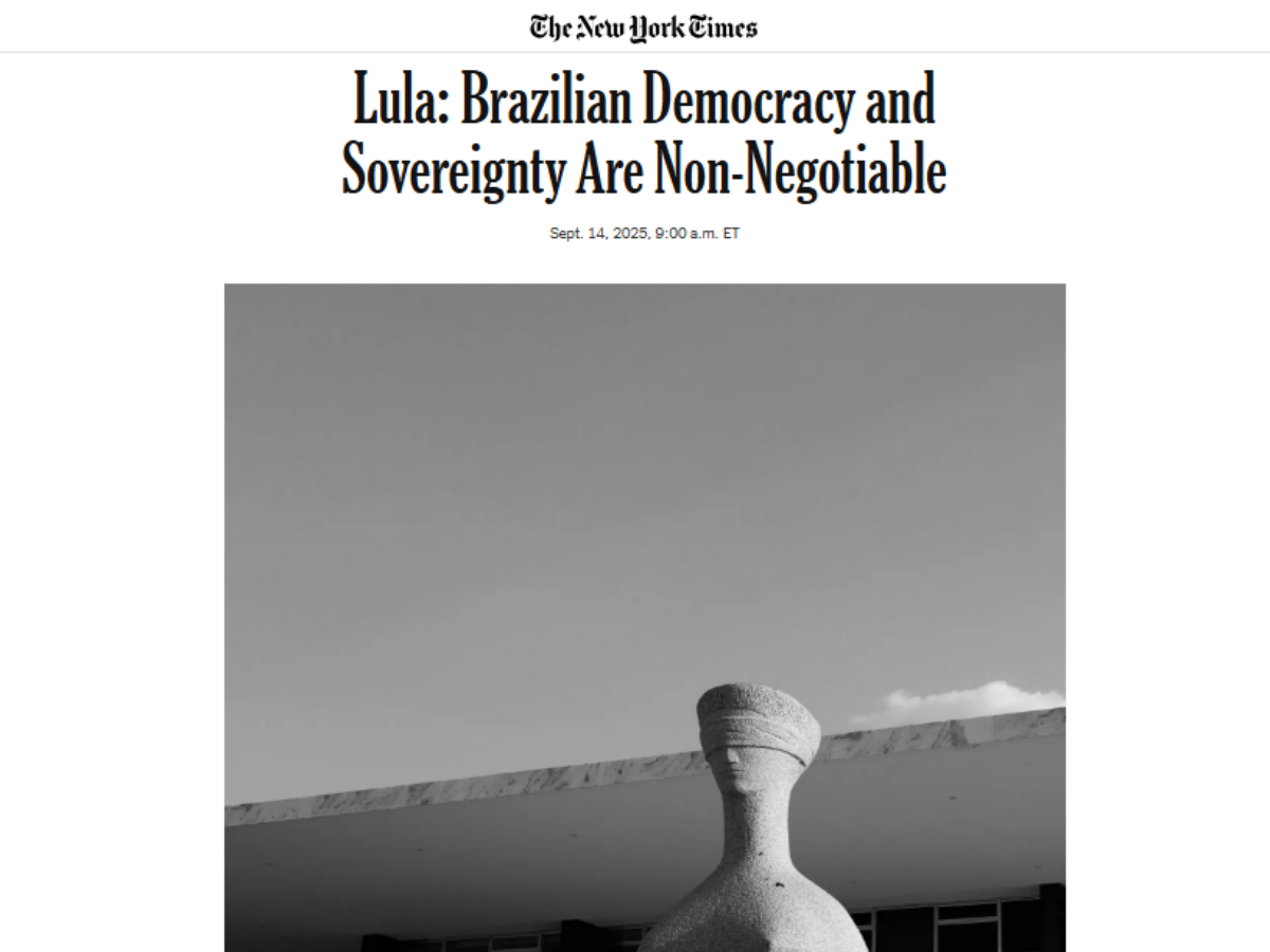 O presidente Luiz Inácio Lula da Silva publicou neste domingo (14/9) um artigo no jornal americano New York Times (NYT) pedindo diálogo com o presidente dos Estados Unidos, Donald Trump, e defendendo a decisão do Supremo Tribunal Federal (STF) que condenou o ex-presidente Jair Bolsonaro.