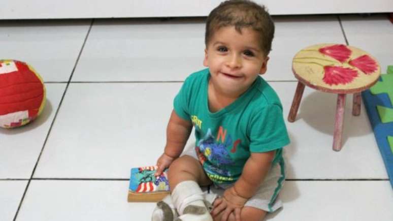 Ele precisou fazer cirurgia nos pés, usar gesso durante dois meses. Ele também não sentia as pernas e, hoje, se você apertar, ele vai dizer, 'ai! Sai!'. Está começando a ter sensibilidade.
