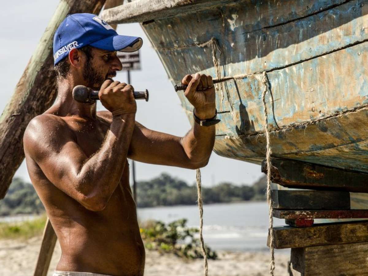 Ele trabalha em pequenas embarcações que pescam camarão no mar aberto. "Na água, a gente sofre com a concorrência desleal de embarcações maiores, que passam vários dias em alto mar e pescam irregularmente na área destinada aos pequenos", diz.