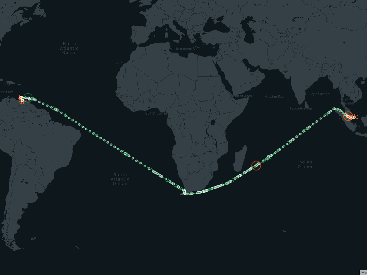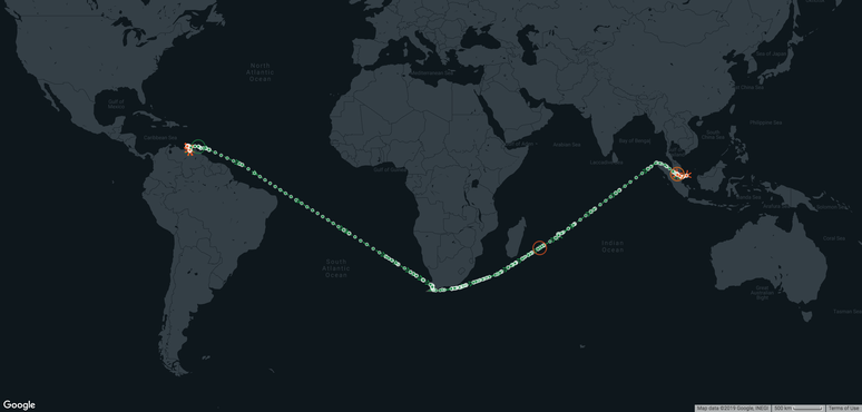 De acordo com o analista da Kpler, não é possível afirmar, apenas com informações disponíveis sobre a trajetória do navio, quando o derramamento de petróleo teria começado.
