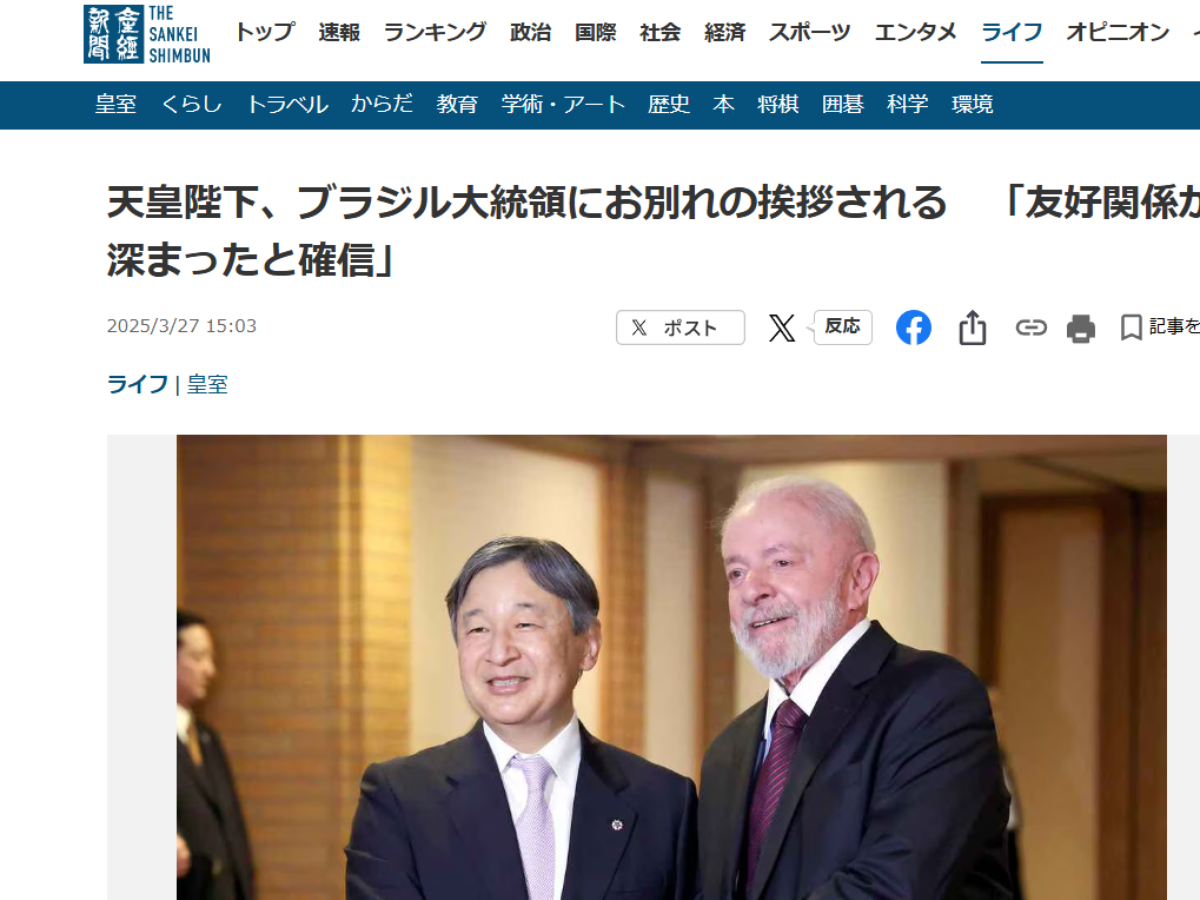 Em seu site, o jornal Sankei conta que "o Imperador expressou sua confiança no aprofundamento da amizade entre os dois países, e Lula agradeceu pela recepção e mencionou o trabalho do imperador em pesquisas sobre água".