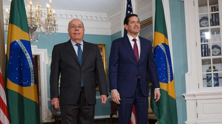 O ministro das Relações Exteriores do Brasil, Mauro Vieira, e o secretário de Estado americano, Marco Rubio, se reuniram por cerca de uma hora nesta quinta-feira (13/11), na sede do Departamento de Estado, em Washington, para discutir as negociações sobre as tarifas impostas pelos Estados Unidos a produtos brasileiros.